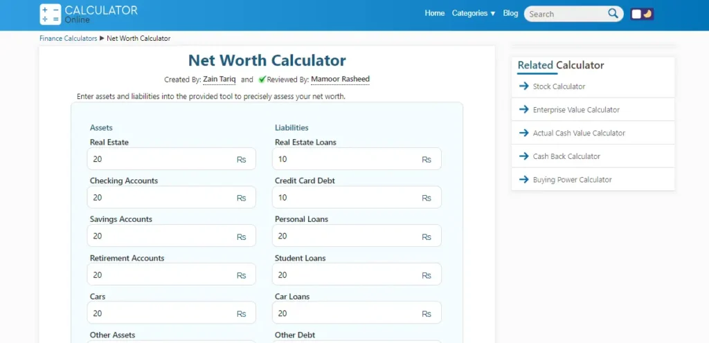 So, in such a scenario, an online net worth calculator can help you calculate your net worth depending on age, assets, and liabilities.
